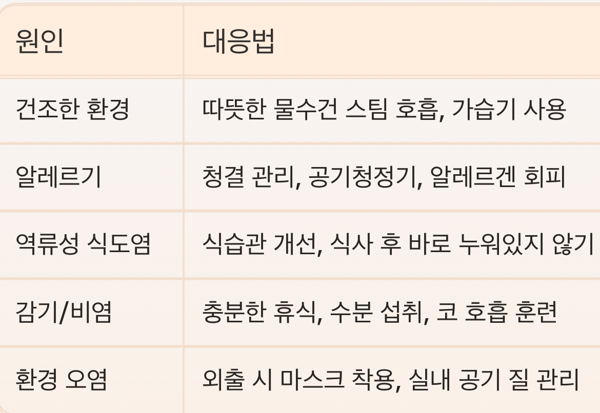 - 건조한 환경: 특히 겨울철 난방을 많이 하는 실내에서는 공기가 건조해져 가래가 더 많이 생깁니다.