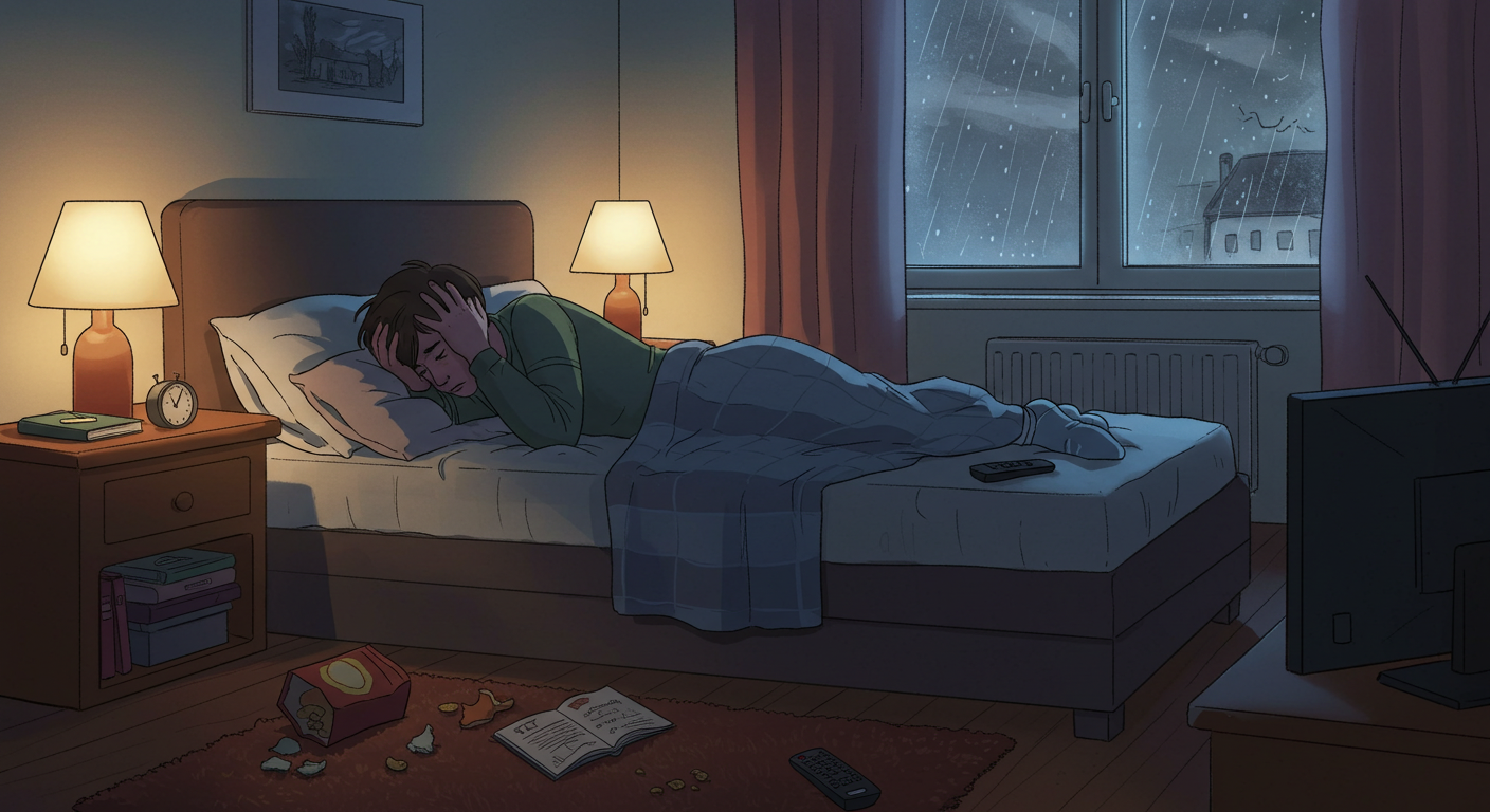 하루 동안 몸을 제대로 못 써서 에너지가 남아도는 상태라, 자연스럽게 숙면이 어려워지는 거쥬.