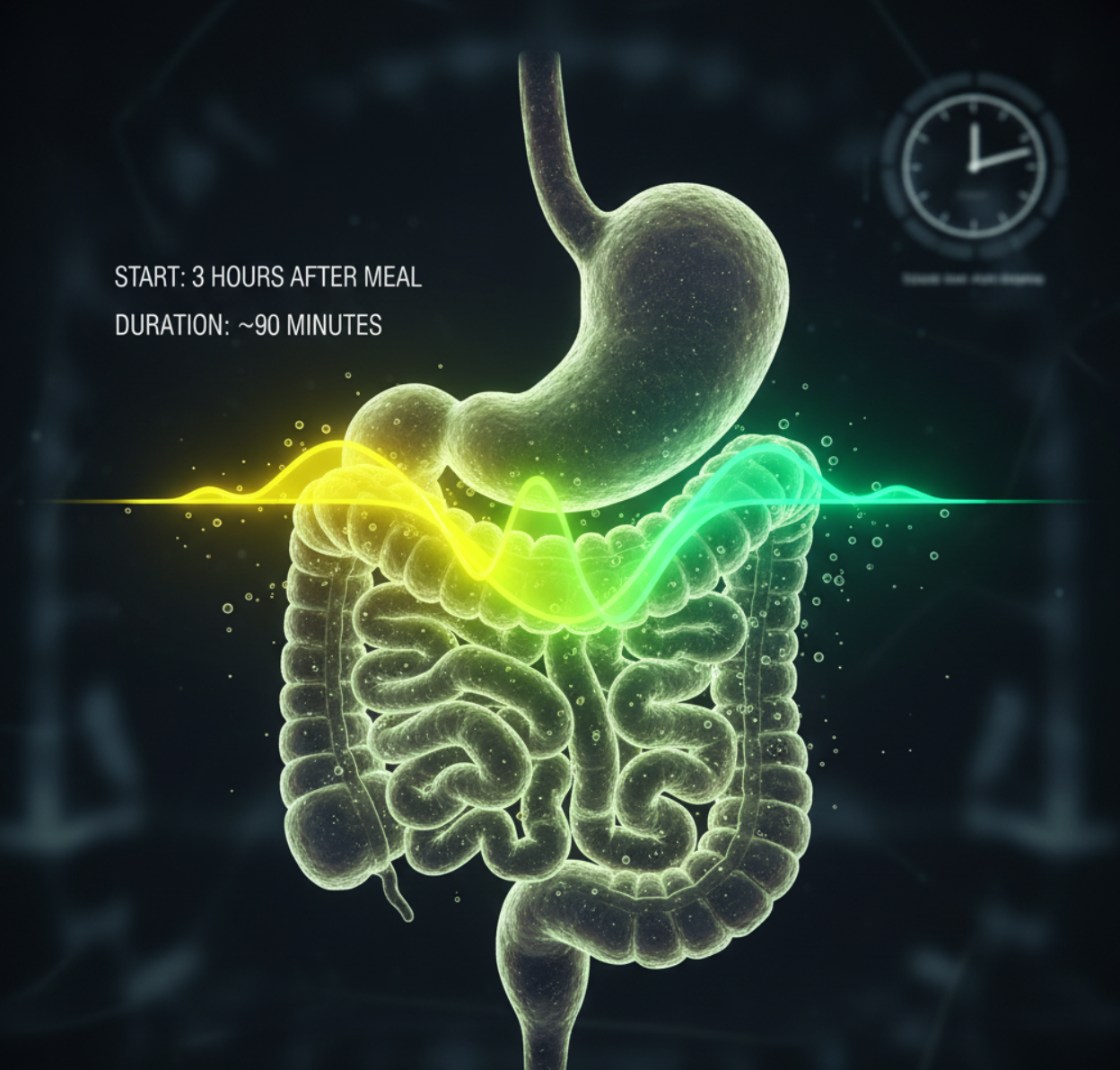 의학 용어로 ’식사 사이의 복합 이동 운동파(Interdigestive Migrating Motor Complex, MMC)’라고 부르는 현상입니다.