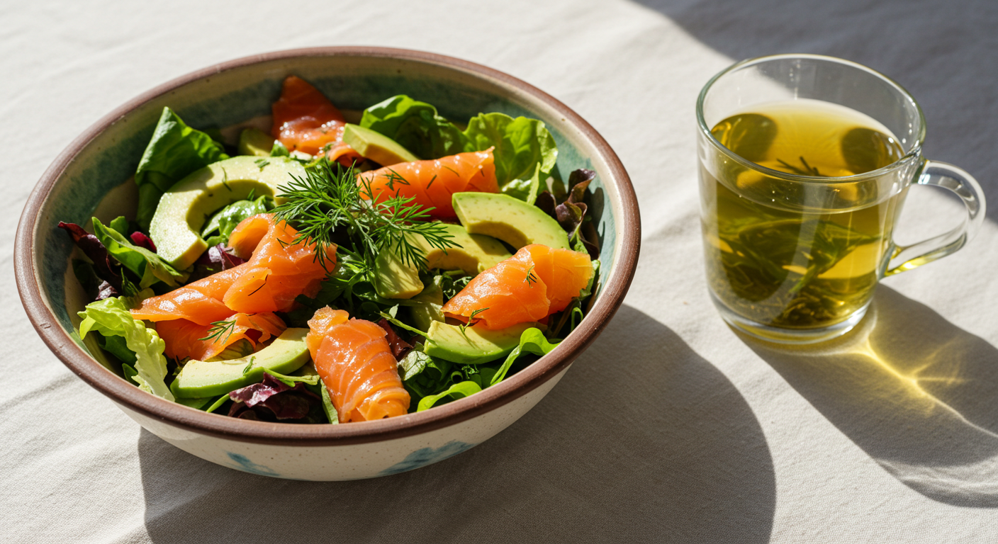- 점심: 연어 샐러드와 녹차