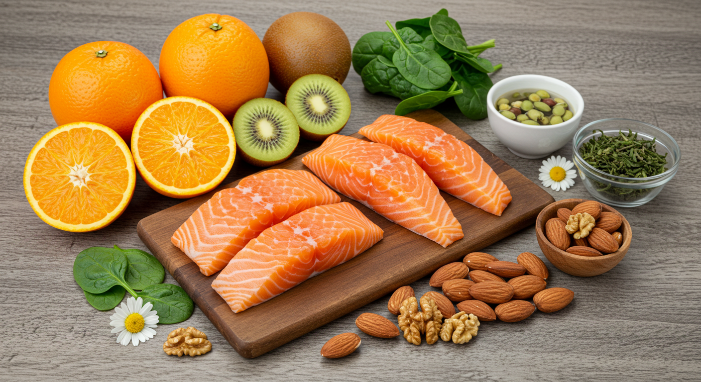 - 비타민 C 폭탄: 오렌지, 키위, 딸기 (산화 스트레스 감소)
