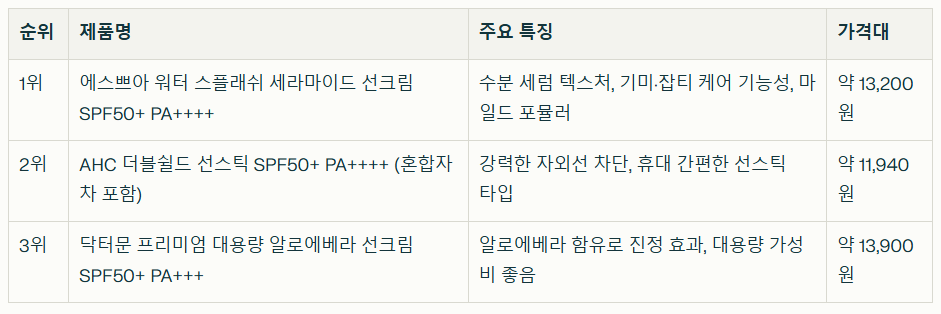 - 여름: SPF 50+ 제품