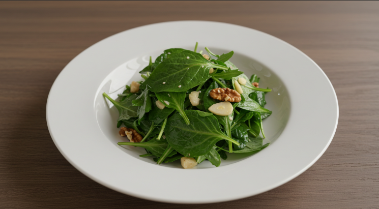 명월초 잎과 다양한 채소, 올리브 오일, 마늘을 이용한 샐러드는 LDL 수치를 낮추는 데 효과적인 건강식입니다.