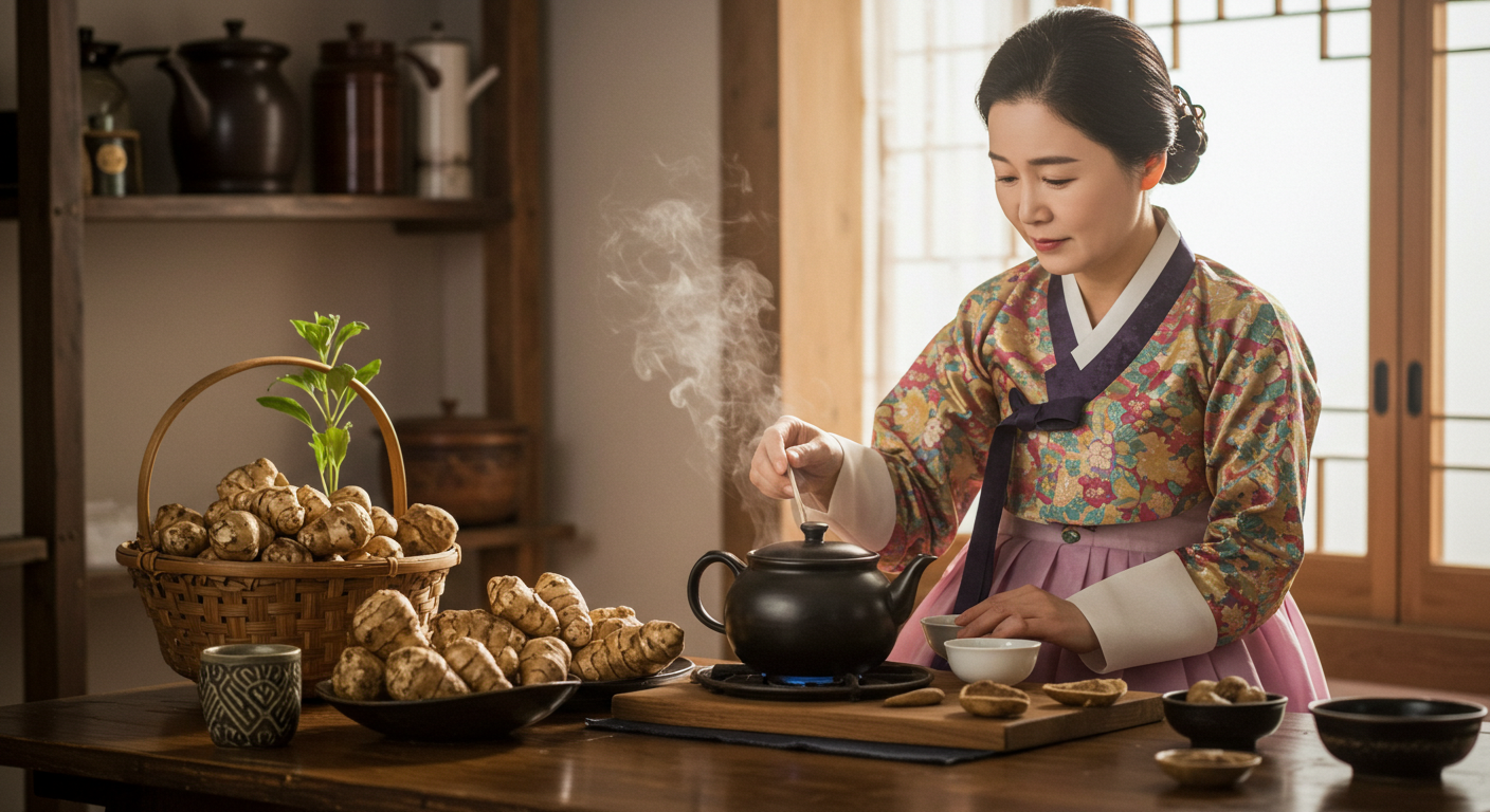 3. 물 1L에 말린 돼지감자 10g을 넣고 15~20분간 끓인다.