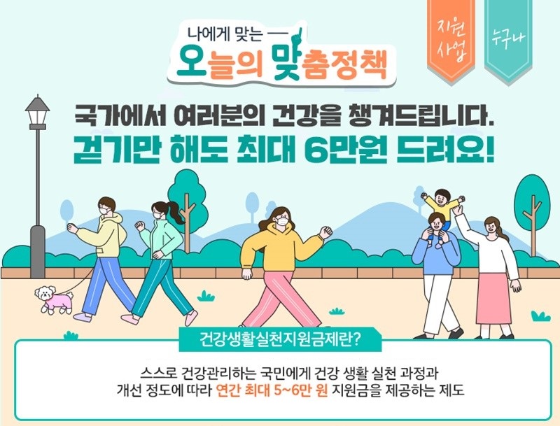 건강생활지원금에 대해 아시나요? 정부에서 국민 건강 증진을 위해 (국민 건강 보험 의료비 지출을 아끼기 위해?!) 시행하는 지원제도인데요. 매달 최대 20만원 받는 건강생활지원금으로 건강도 챙기고 돈도 받을 수 있는 일석이조의 기회, 놓치지 마세요.